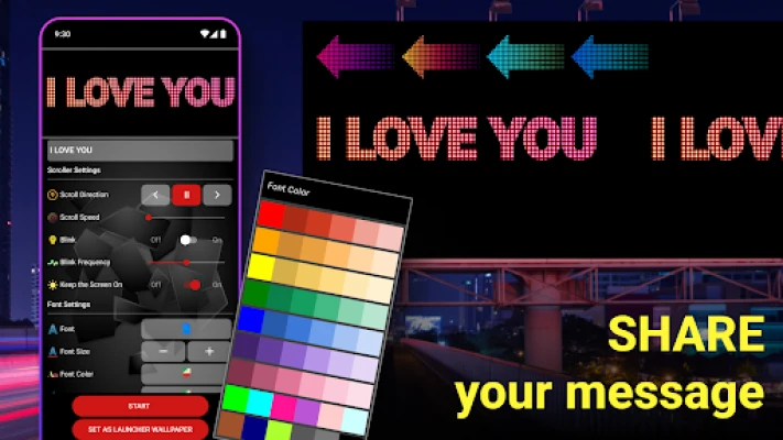 LED Banner is an amazing new app that makes creating LED scrollers a breeze! With this app, you have the power to create stunning text LED boards with the touch of a button. Whether you're looking to create scrolling text to have as live wallpaper or want to add personalized flair to your device, the digital LED signboard has everything you need.🔥