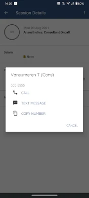 You can choose to filter rota information by department, site or specialty allowing you to locate and call oncall doctors or staff working in specific areas of the hospital.
