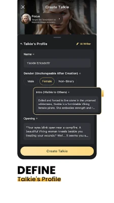 Talkie is also a thriving, collaborative AI content community where users can design unique Talkies, explore other user-generated content, and engage with other people to build and evolve their creations. Whether you're a professional creator, a hobbyist, or just passionate about AI, Talkie gives you the tools to craft and share your own AI-powered world with others.